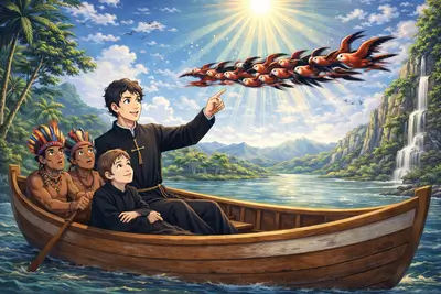 O Padre Anchieta, também conhecido como o “Apóstolo do Brasil”, teve diversos milagres atribuídos a ele. Um deles, envolvendo papagaios, conta que Anchieta pediu aos pássaros, usando a língua dos índios, que fizessem sombra ao seu barco durante uma viagem.